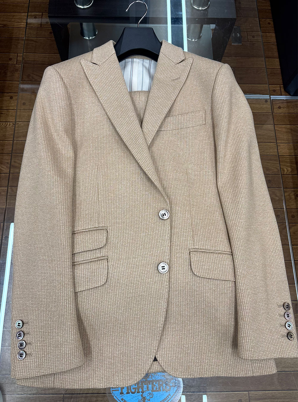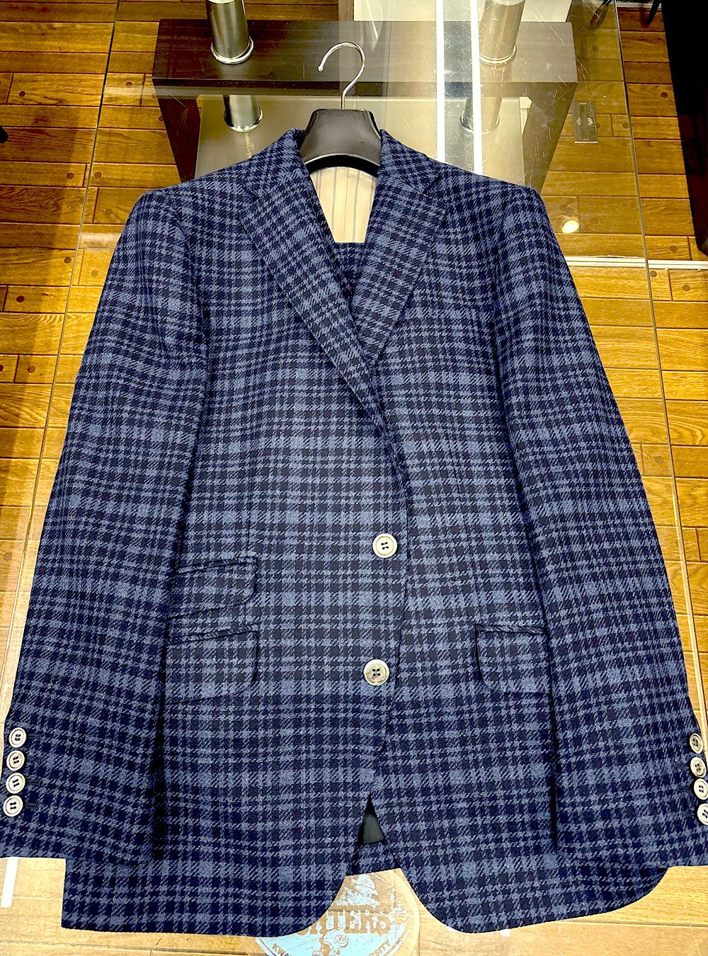 ジャージとトロフェオ・カシミヤの生地でスリーピースを2着オーダーいただきました。