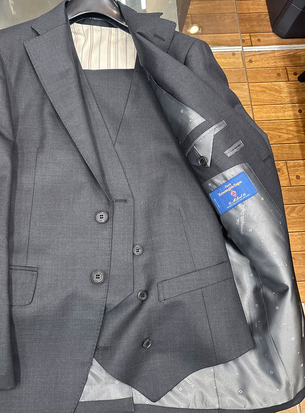 エルメネジルド・ゼニア 15MilMil15(15ミルミル15)チャコールグレー3ピーススーツになります。